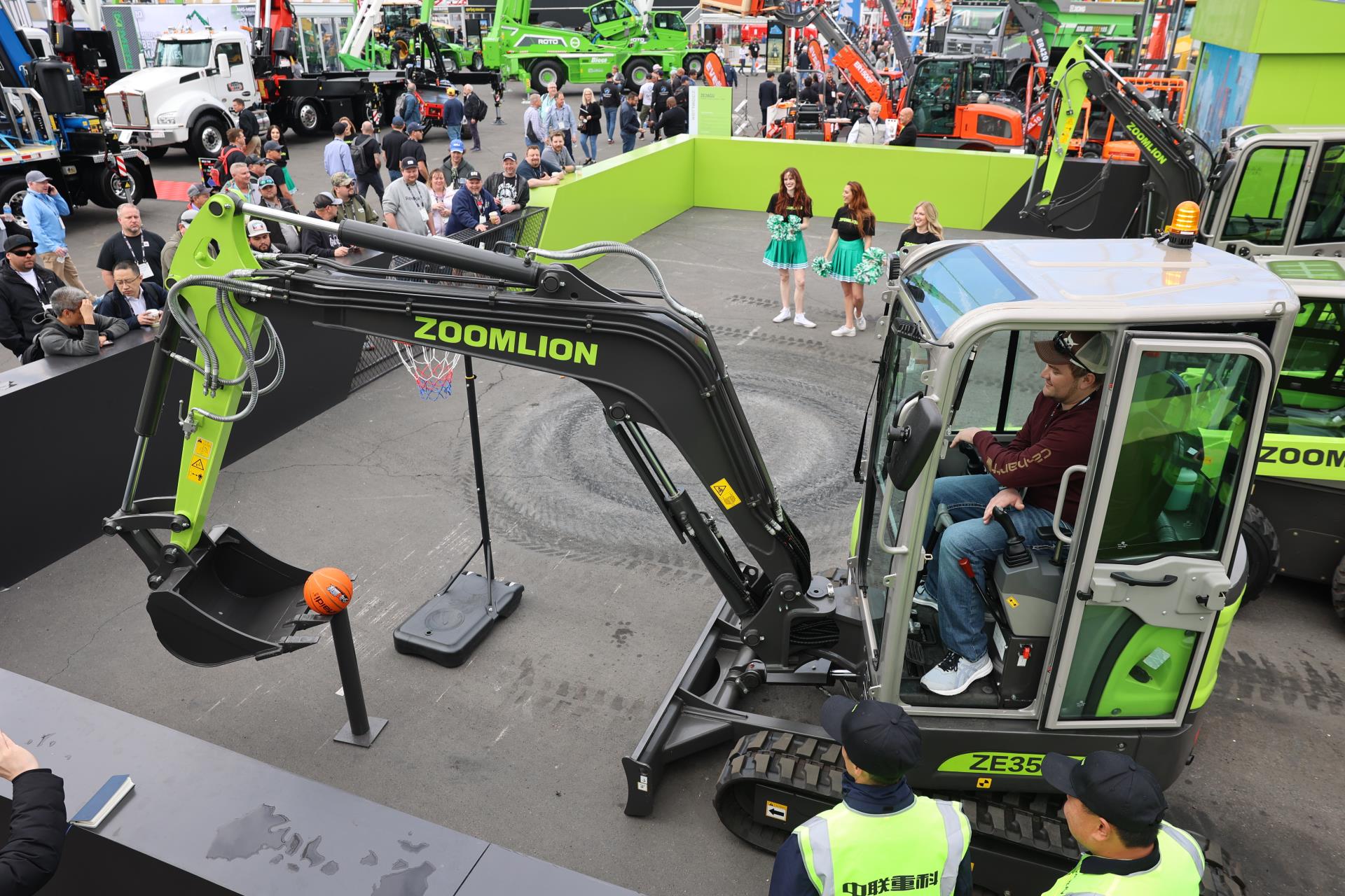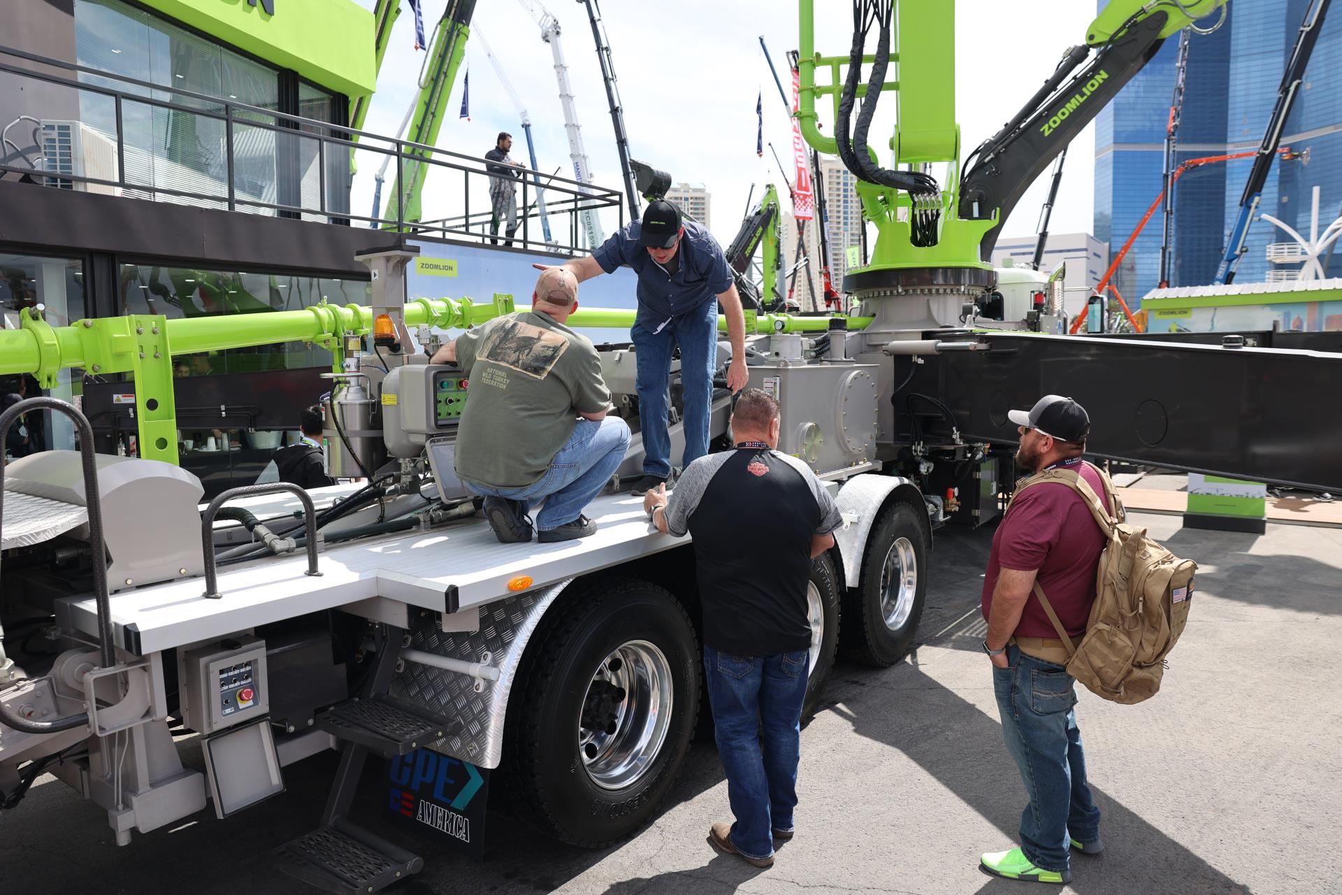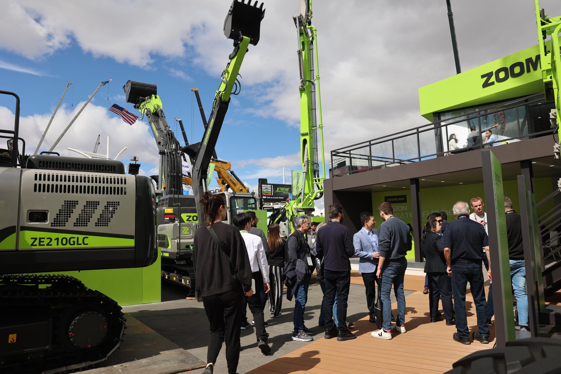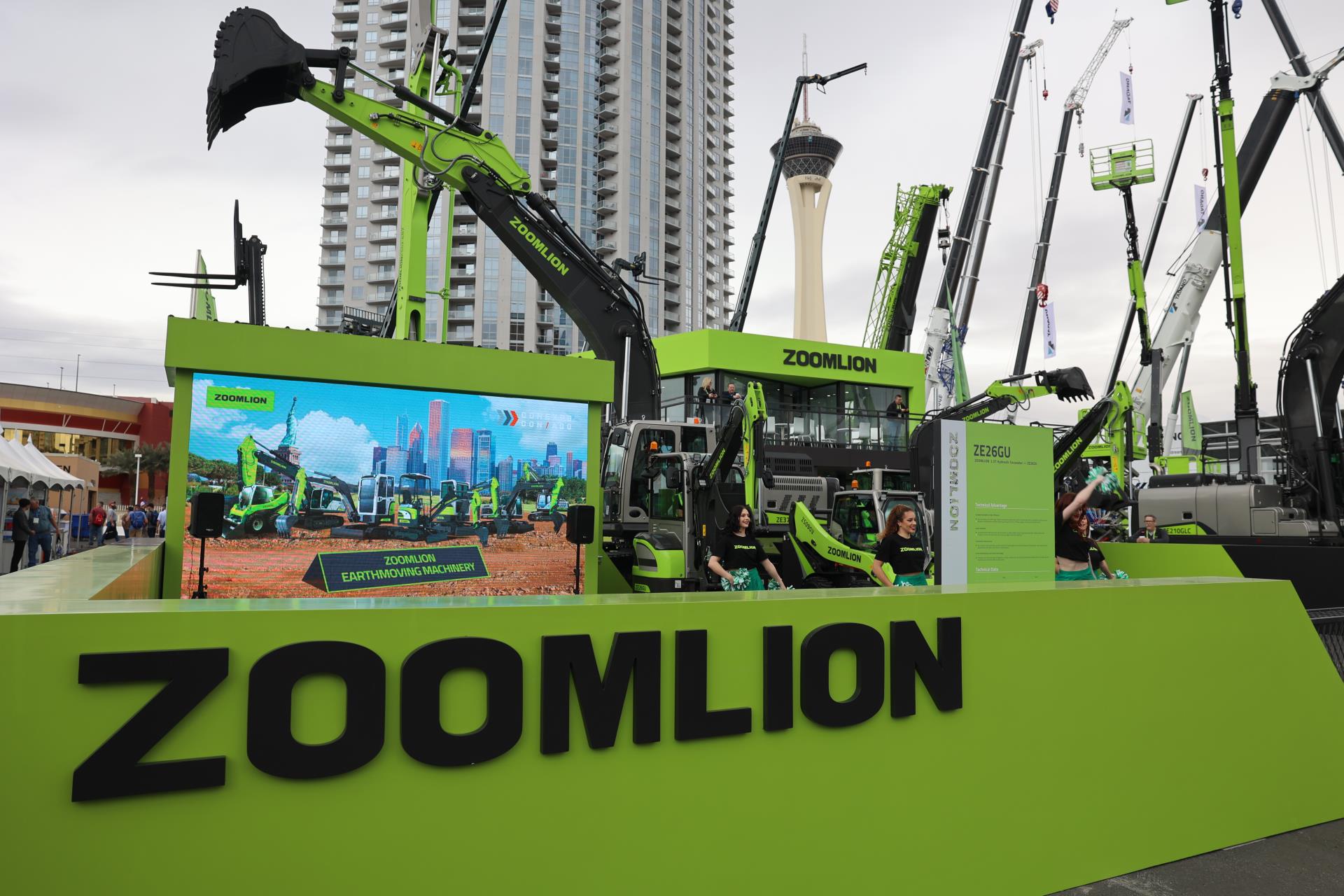 與上一屆美國拉展相比,中聯(lián)重科此次參展產(chǎn)品增加近60%。在F9615展位,是中聯(lián)重科工程起重機(jī)械、建筑起重機(jī)械、混凝土機(jī)械、高空作業(yè)機(jī)械、土方機(jī)械、工業(yè)車輛、m-tec干混砂漿設(shè)備等7大類產(chǎn)品及零部件,凝聚硬核實(shí)力的產(chǎn)品、精彩的挖機(jī)投籃表演、活力的舞蹈,吸引著一批又一批的客商駐足體驗(yàn)、觀看;展廳內(nèi),商務(wù)洽談簽約、產(chǎn)品發(fā)布、智能制造演示等活動(dòng)輪番上演,精彩持續(xù)不停。