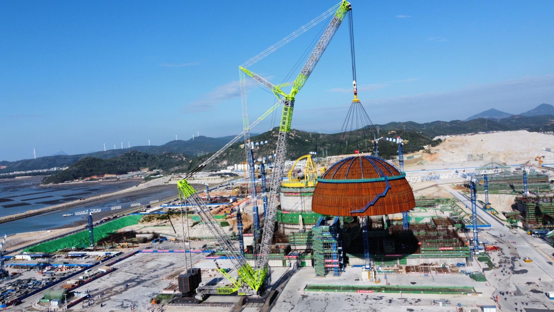 △中聯(lián)重科ZCC3200NP履帶式起重機(jī)進(jìn)行漳州核電穹頂?shù)跹b