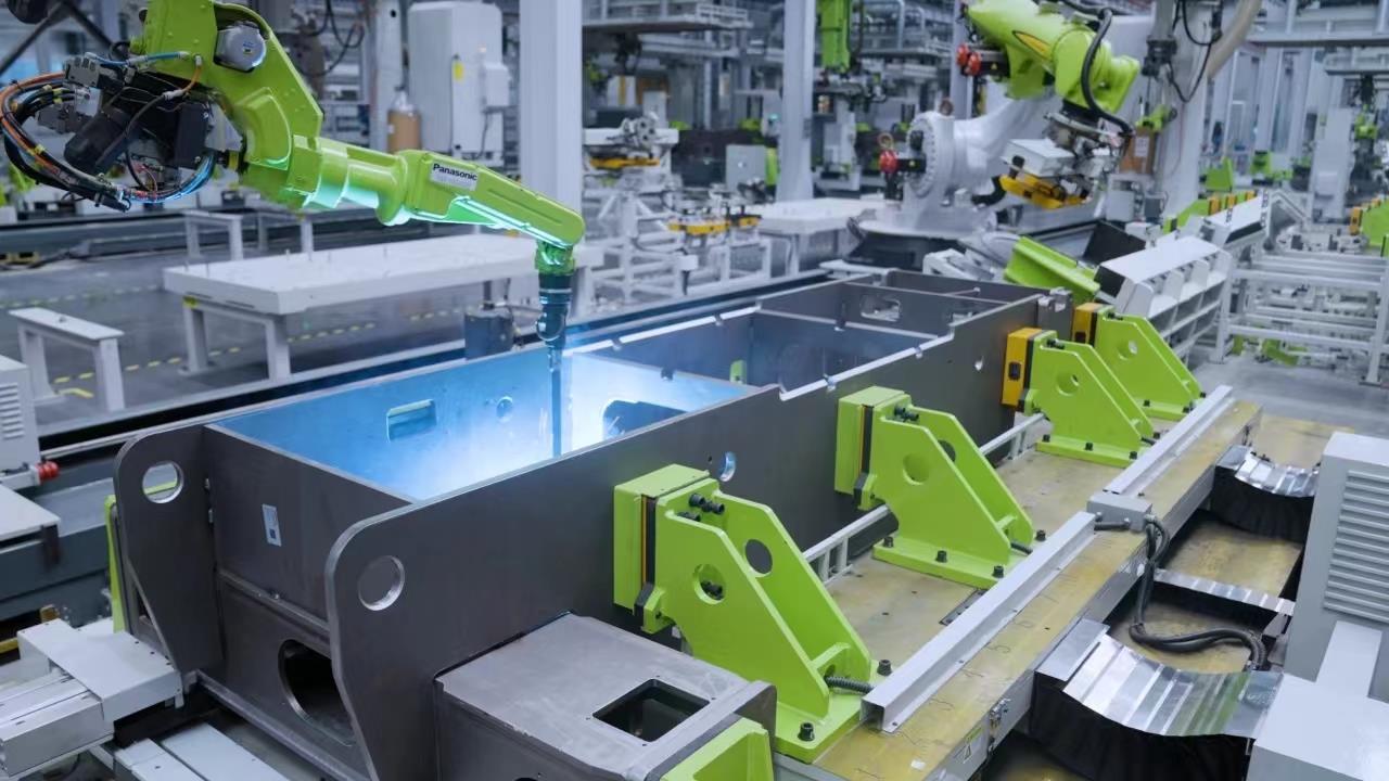 △中聯(lián)重科智能高機(jī)臂式車(chē)架轉(zhuǎn)臺(tái)結(jié)構(gòu)車(chē)間人機(jī)協(xié)同制造場(chǎng)景