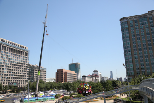 兩臺QY95大型起重機(jī),它們的工作是定位支撐央視“高空二維有線索道攝像系統(tǒng)”,起重機(jī)位于東單和郵通街兩個位置,由兩端拉起560米的索道。用于拍攝習(xí)近平總書記乘車閱兵的畫面,并承擔(dān)側(cè)面拍攝閱兵方陣的重任。兩臺QY95起重機(jī)架設(shè)的長達(dá)560米的索道是全世界目前**長的一條二維有線索道。