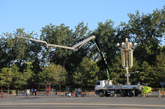此次大閱兵拍攝,中聯(lián)重科派出包括兩臺80噸大型起重機(jī),兩臺95噸大型汽車起重機(jī),兩臺16噸汽車起重機(jī),一臺60米亞洲**高云梯消防車,一臺53米消防云梯車,一臺33米泵車,全力配合閱兵直播。讓我們一起來看看位于天安門核心區(qū)域及長安街沿線的這些高端裝備產(chǎn)品是如何配合央視進(jìn)行全球直播工作的?