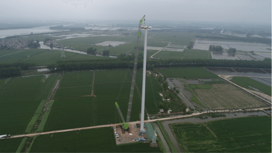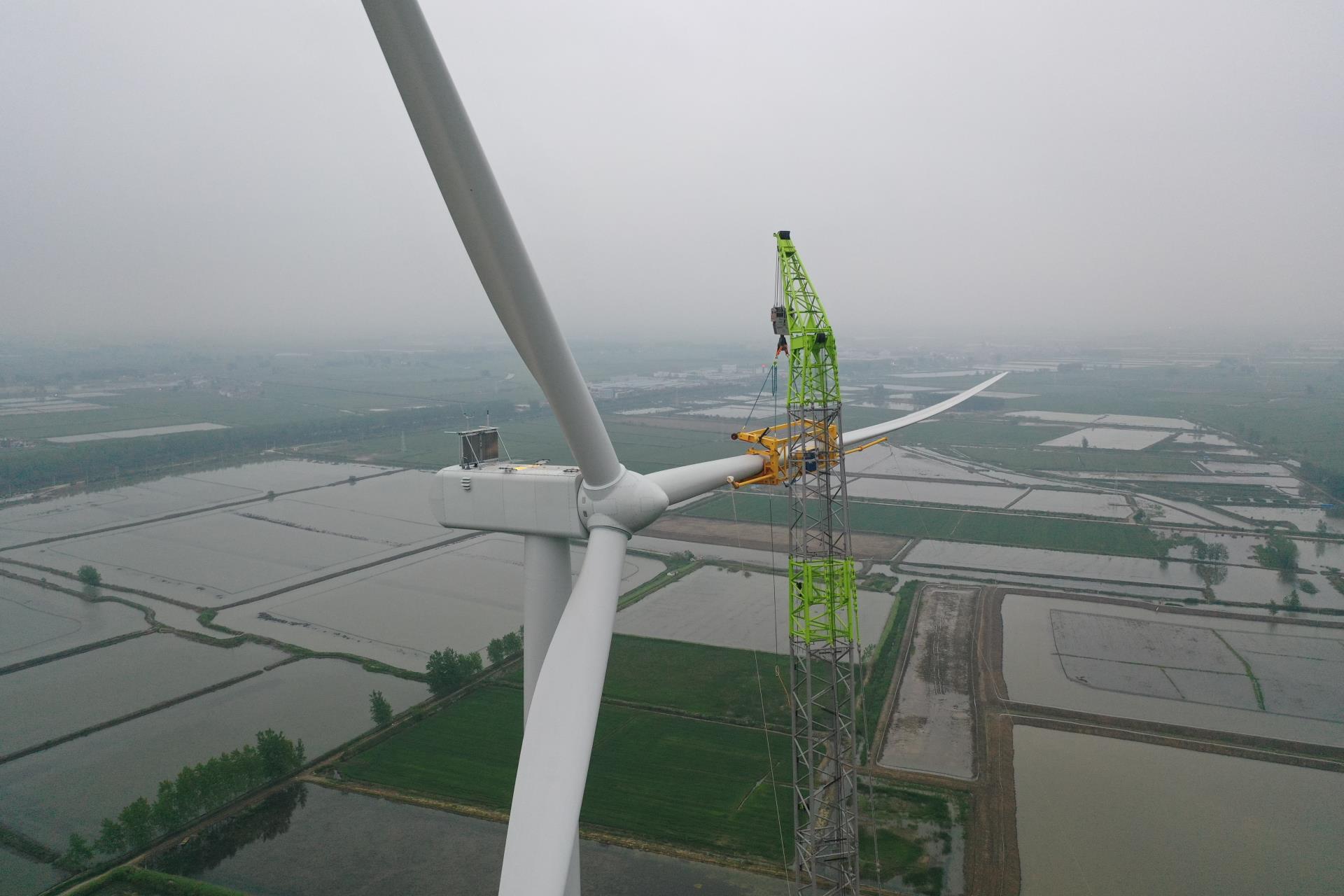 ▲中聯(lián)重科ZCC9800W起重機順利完成整個風機組裝工作