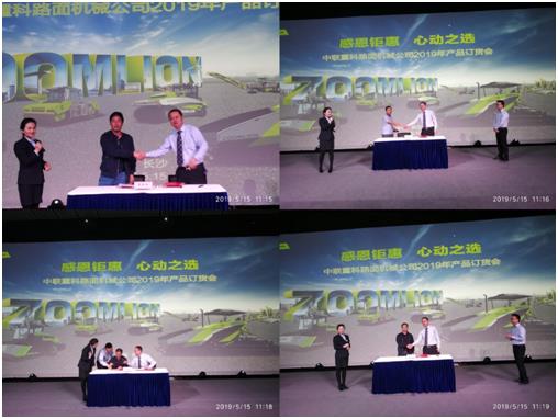 ▲中聯(lián)重科路面機械4.0產(chǎn)品訂貨會上,中聯(lián)重科與廣大客戶簽約合作