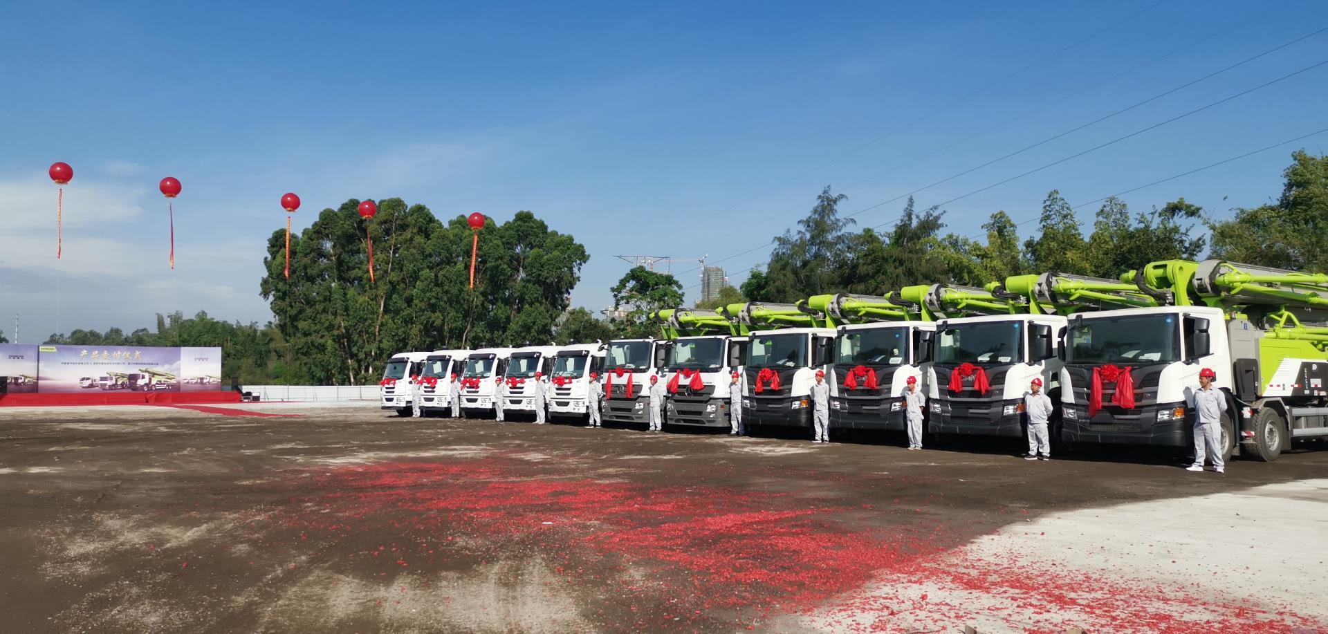 ??? 8月5日,廣東茂名晴空萬里,微風(fēng)拂面,中聯(lián)重科股份有限公司與南京旭程投資管理有限公司泵送精品交付儀式在此隆重舉行。交付儀式上, 4.0極光綠泵送精品臂立蒼穹,分列兩側(cè),威風(fēng)十足;現(xiàn)場(chǎng)鞭炮轟鳴、彩帶紛飛、舞獅翻騰,在紅紅火火的氛圍中,中聯(lián)重科將金鑰匙交付給南京旭程,完成了首批10臺(tái)產(chǎn)品交付。雙方自2009年起一直友好合作,南京旭程今年再次批量采購總價(jià)值近億元的泵車和車載泵,充分彰顯了對(duì)中聯(lián)重科產(chǎn)品和服務(wù)的信賴,也展現(xiàn)了公司4.0產(chǎn)品非凡的市場(chǎng)吸引力。