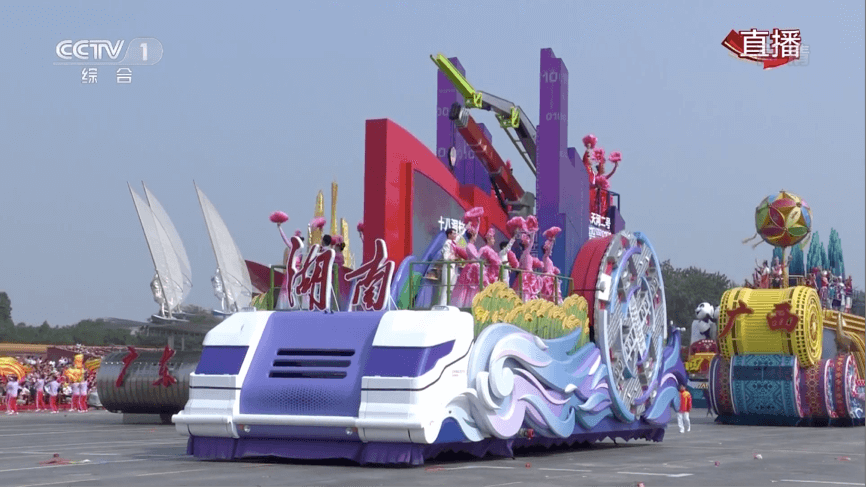 ▲群眾游行活動中,由中聯(lián)重科制作的湖南彩車