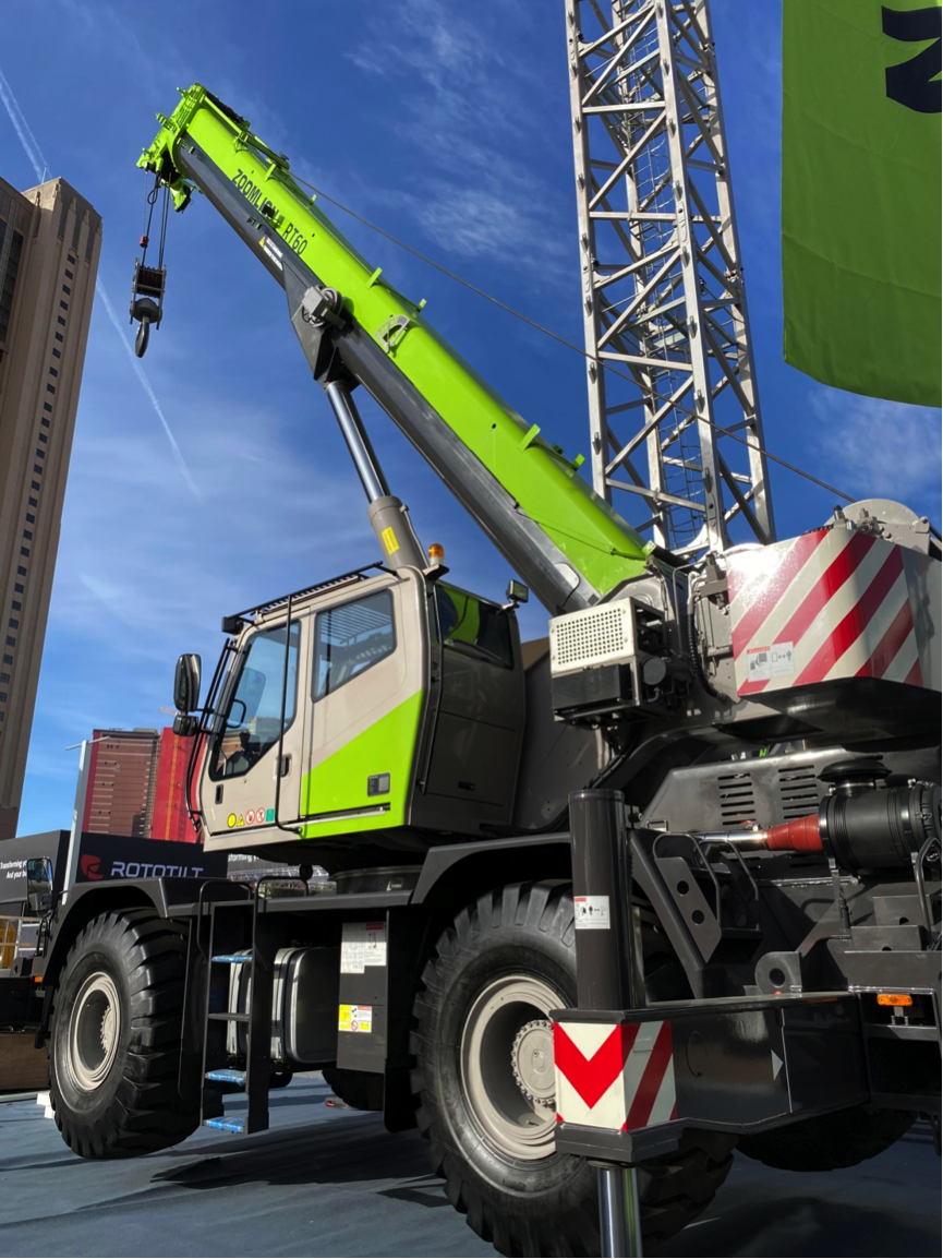 中聯(lián)重科亮相本次美國展的兩款工程起重機械分別為ZCC2600履帶式起重機和RT60越野輪胎起重機。