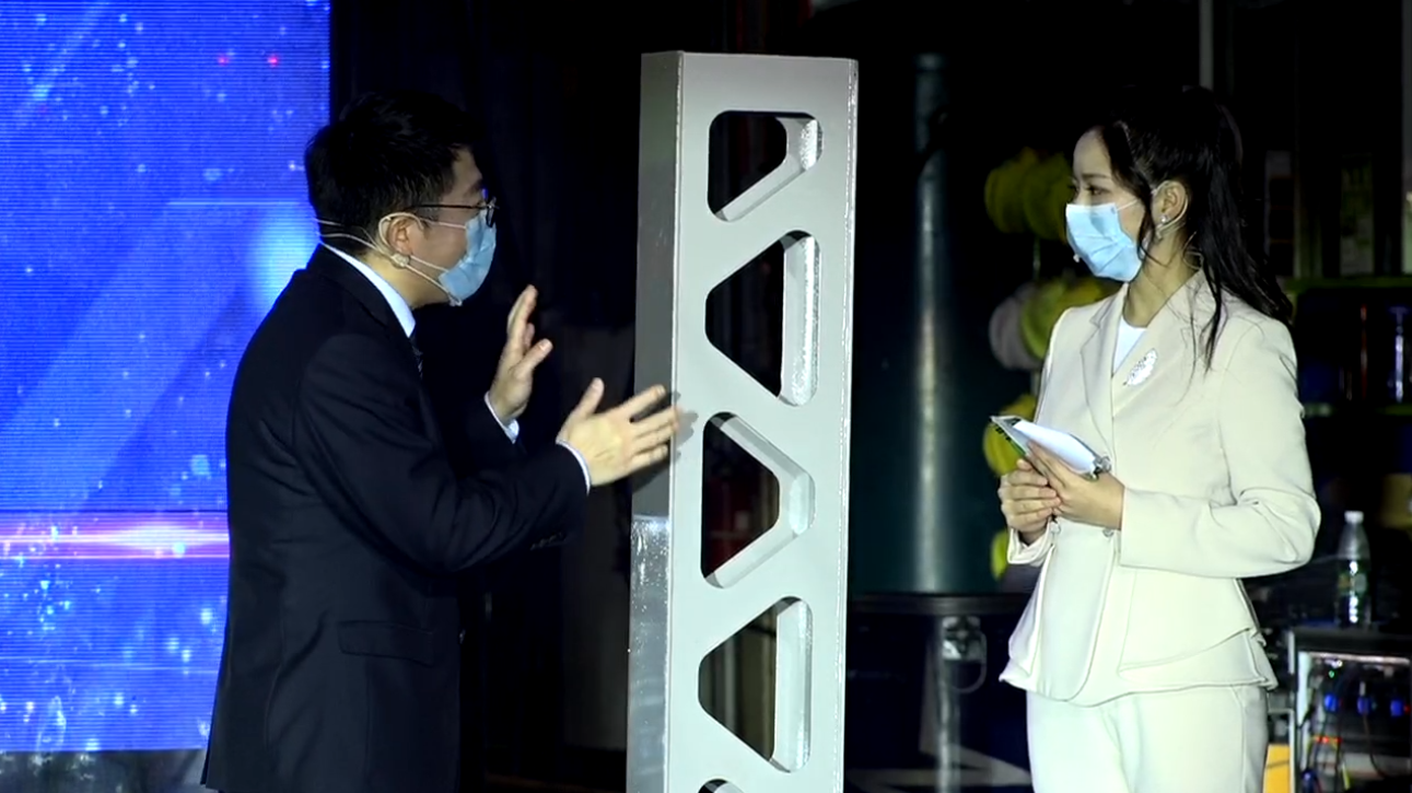 △專(zhuān)家化身主播介紹中聯(lián)重科首創(chuàng)的鏤空臂架設(shè)計(jì)