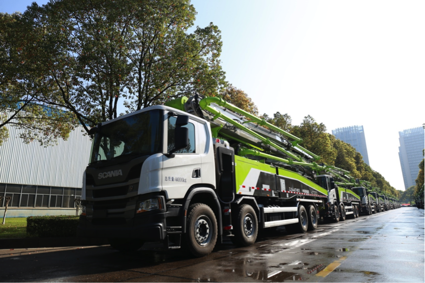 ▲中聯(lián)重科國六混凝土泵車整裝待發(fā)