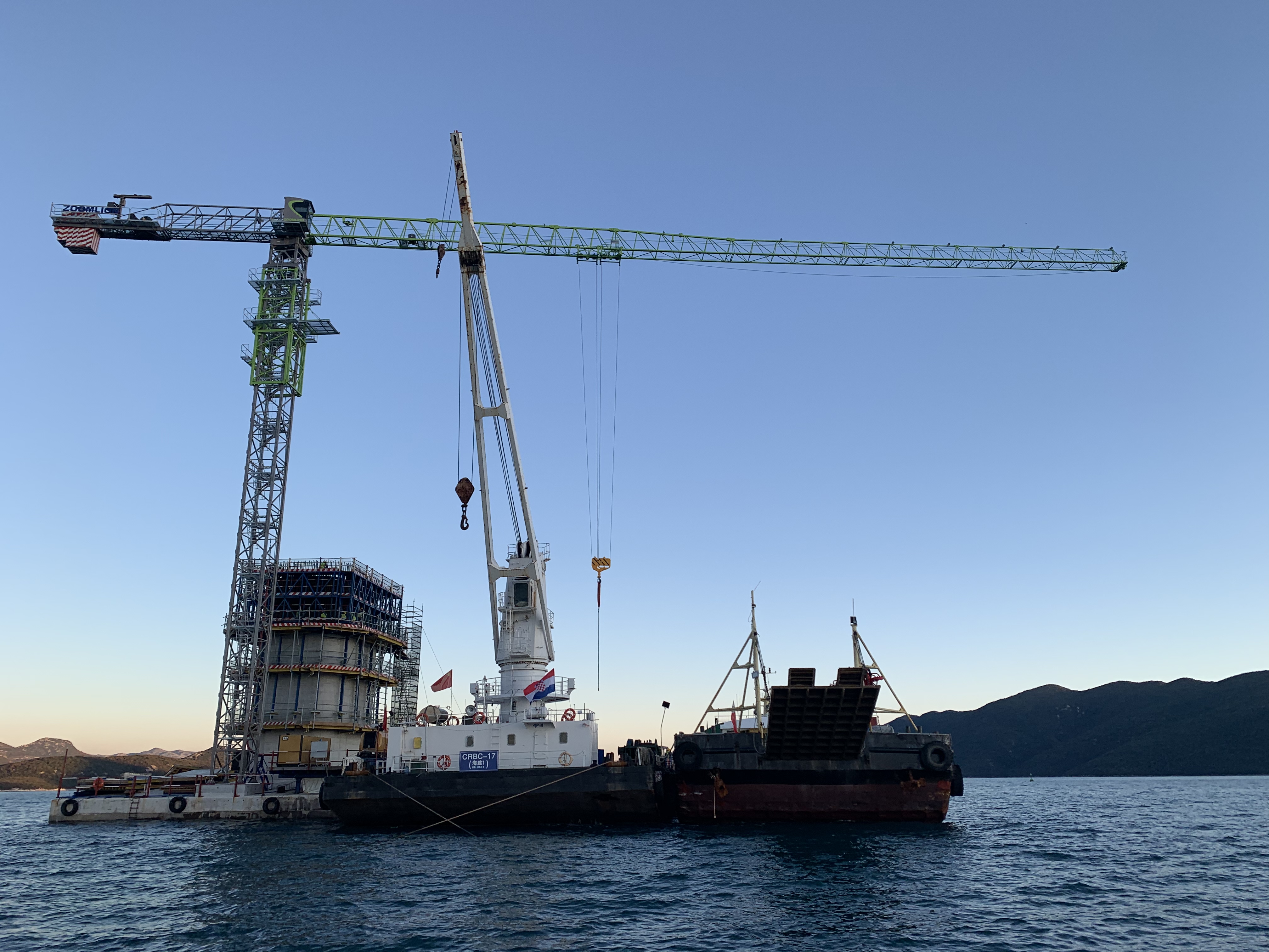 △助建佩列沙茨跨海大橋的中聯(lián)重科T7020-12H(IL)塔機(jī)