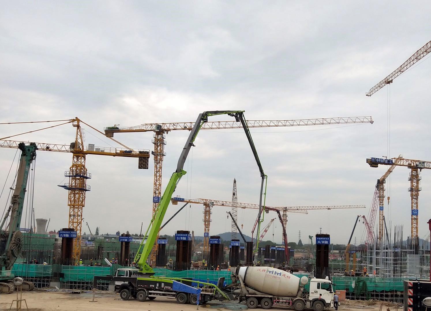 ▲? 中聯(lián)重科泵車(chē)助力杭州西站建設(shè)