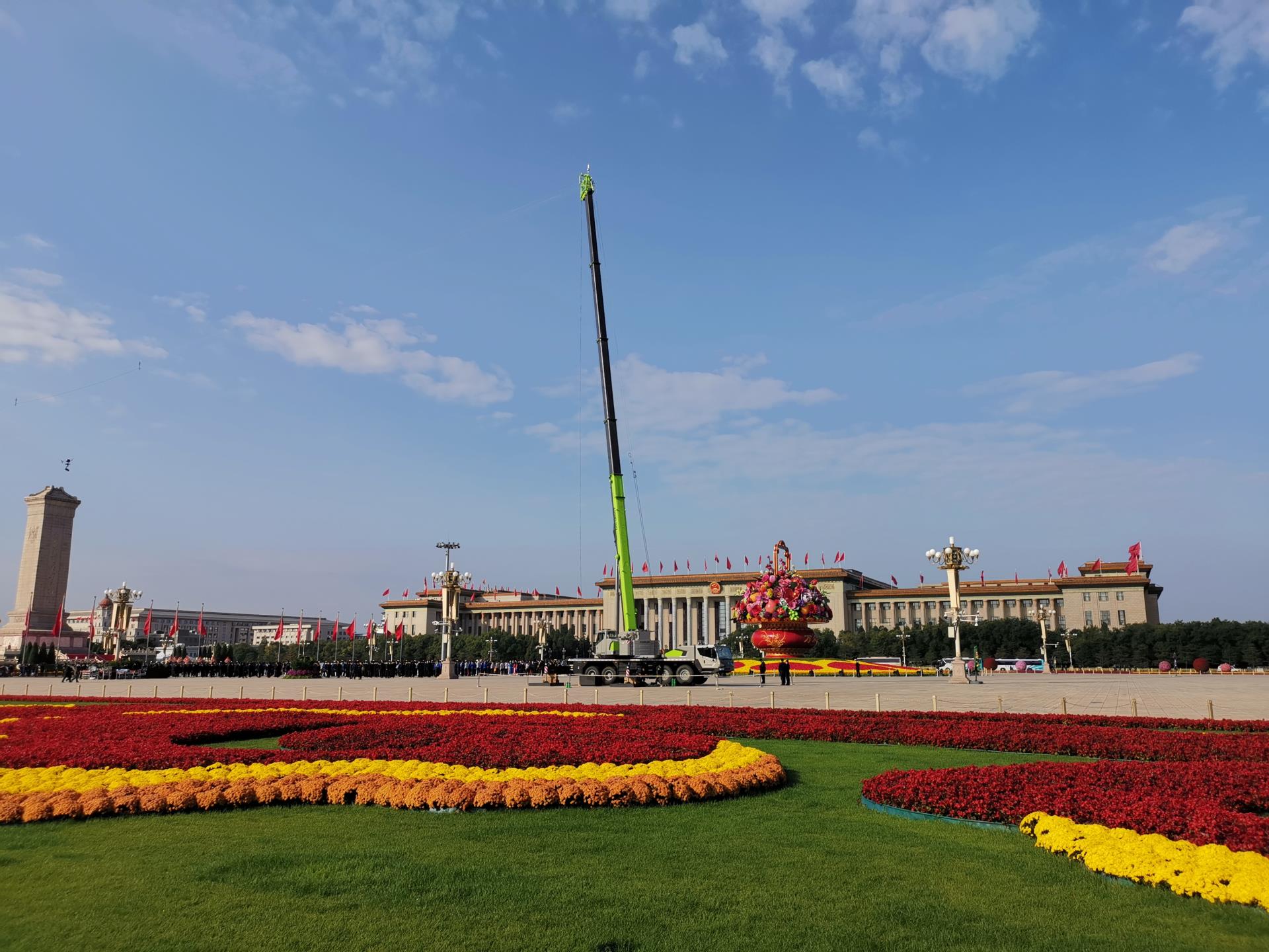 此次活動(dòng)中,中聯(lián)重科再度擔(dān)綱協(xié)助央視直播設(shè)備的架設(shè)任務(wù)。為確保直播的萬(wàn)無(wú)一失,早在半個(gè)月前,中聯(lián)重科就已派出了兩臺(tái)80噸汽車(chē)起重機(jī)和一支8人工作小組赴北京進(jìn)行準(zhǔn)備與演練。在儀式現(xiàn)場(chǎng),天安門(mén)廣場(chǎng)中間位置,兩臺(tái)極光綠汽車(chē)起重機(jī)拉起了一條高40米、長(zhǎng)300米的索道,搭載的“天鷹座索道攝像系統(tǒng)”呈現(xiàn)了儀式的全景視角。