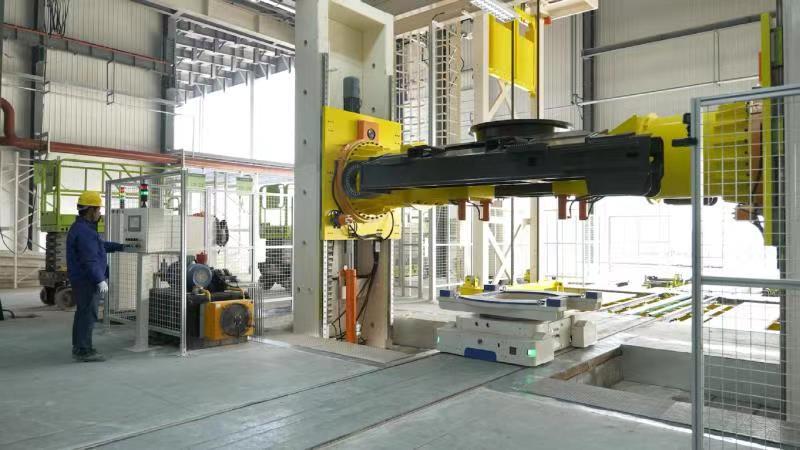 據(jù)介紹,中大挖智能裝配車間僅智能配送機器人就有100多臺,可以滿足9000多種零部件的智能配送,是行業(yè)內零部件按單臺套配送比例**高的柔性智能裝配產(chǎn)線。以履帶自動裝配單元生產(chǎn)為例,RGV(有軌輸送小車)實現(xiàn)履帶的自動輸送,自動鋪卷機將卷好的履帶鋪平,然后通過自動調距裝置調節(jié)好兩個履帶間的裝配距離,穿梭車自動將下車架放置在履帶上,自動包卷機將履帶包卷在下車架上,這樣履帶在下車架上就輕松安裝好了。