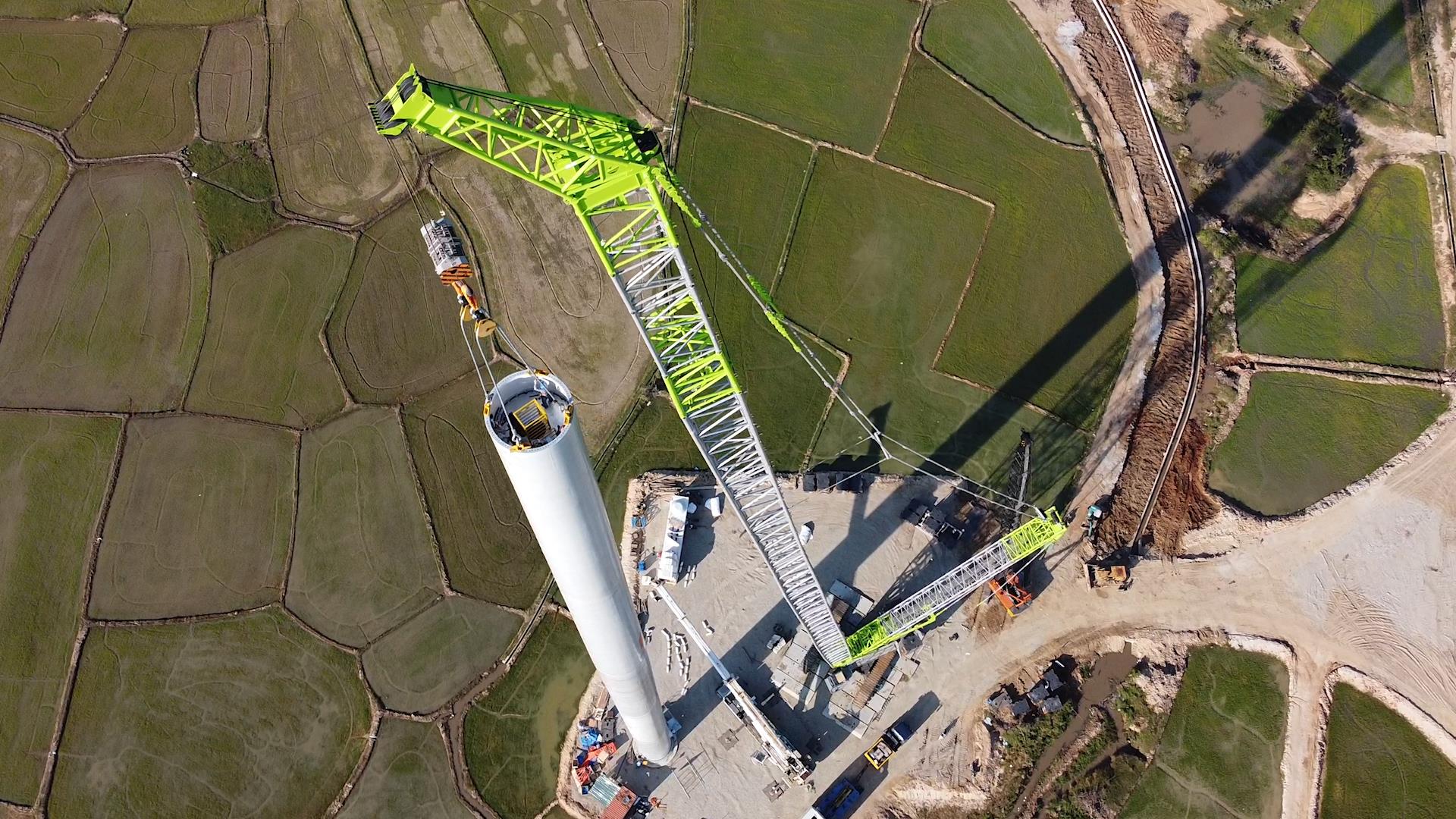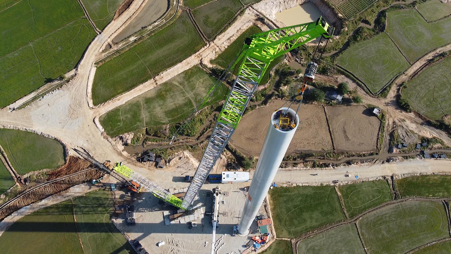 近日,在“一帶一路”沿線國家越南的某風(fēng)電機組安裝現(xiàn)場,一臺中聯(lián)重科極光綠履帶式起重機巍峨挺拔地矗立在這南國田園里緊鑼密鼓地進(jìn)行吊裝工作。