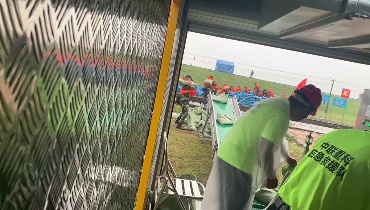 在正式演練中,中聯(lián)重科應(yīng)急砂石打包模塊車擔(dān)當(dāng)管涌圍堵科目演練的主力裝備,應(yīng)急救援隊(duì)員嚴(yán)格按照應(yīng)急預(yù)案密切配合開展該科目的演練,利用應(yīng)急砂石打包模塊車對堤壩加高加固和圍井搭建所需大量砂石進(jìn)行機(jī)械化快速打包和投送,高效搭建起反濾圍井和堤壩,在演練中僅用幾分鐘就完成了以往傳統(tǒng)管涌圍堵打包幾小時(shí)的工作量。