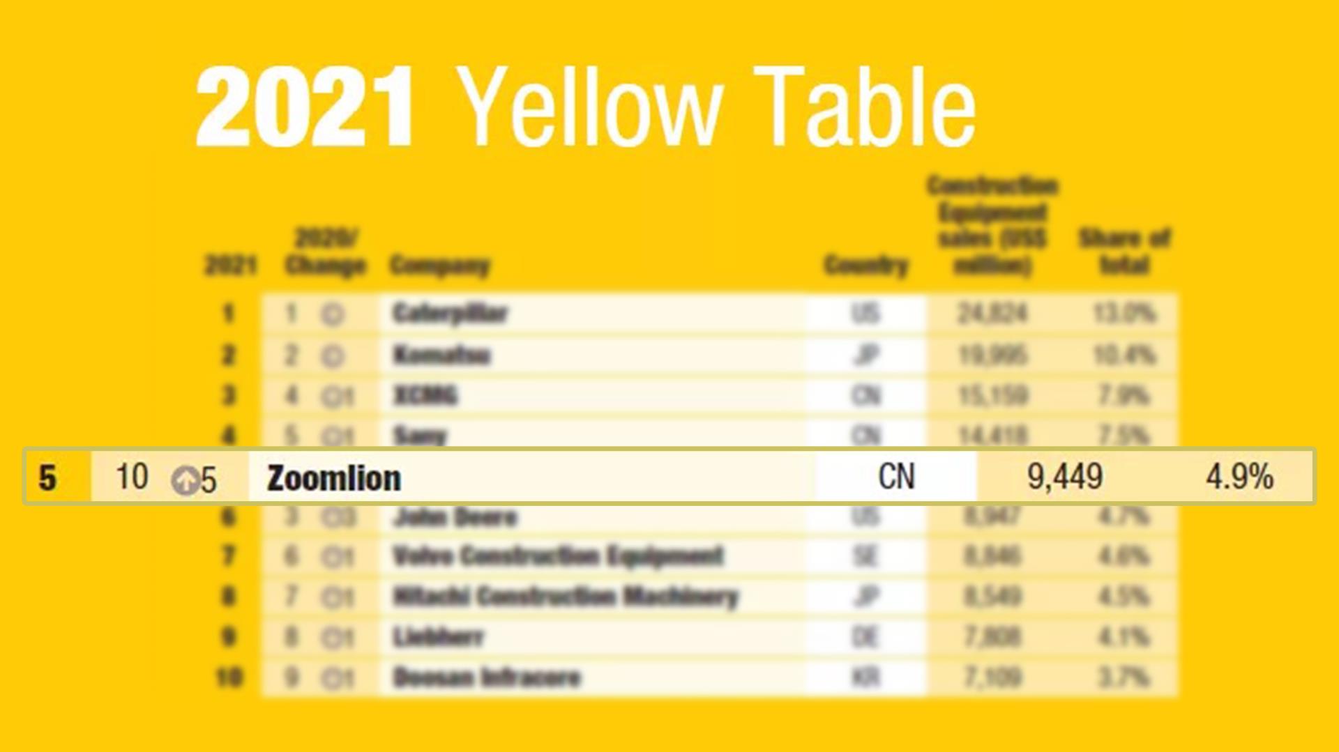 △中聯(lián)重科位列2021 Yellow Table 全球前五強(qiáng)