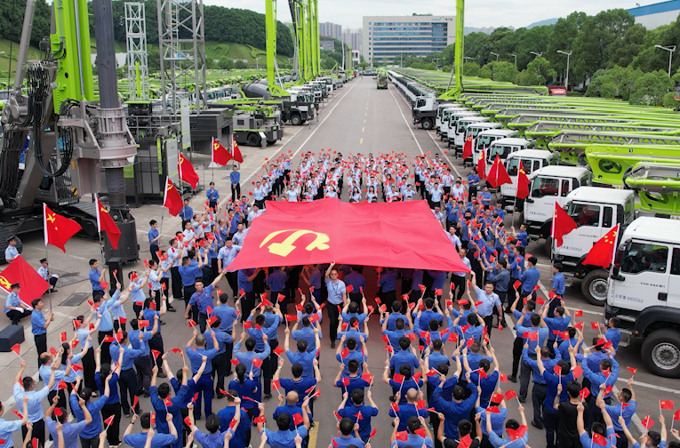 “沒有共產(chǎn)黨,就沒有新中國(guó)……”6月16日,中聯(lián)重科“百年征程創(chuàng)輝煌,紅歌禮贊共產(chǎn)黨”經(jīng)典紅歌傳唱活動(dòng)在長(zhǎng)沙麓谷工業(yè)園隆重舉行。壯觀的產(chǎn)品展示坪上,歌聲嘹亮、黨旗飄揚(yáng),500余名中聯(lián)人一齊揮動(dòng)旗幟表達(dá)內(nèi)心激動(dòng),一同用高昂的歌聲唱響對(duì)黨的祝福。