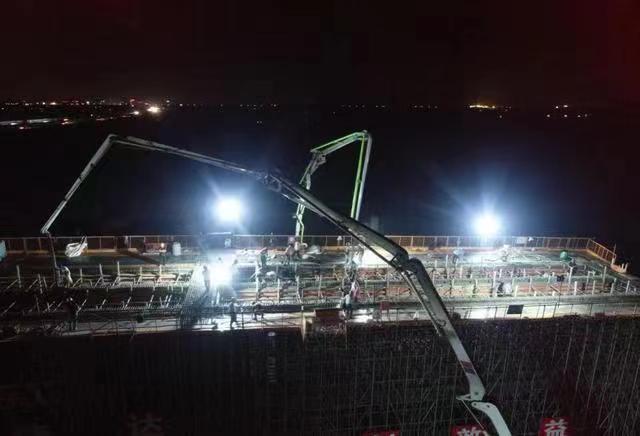 據(jù)了解,除了矗立長江中流擊水的中聯(lián)重科萬噸米級塔機,中聯(lián)重科泵車等設(shè)備也正在為項目建設(shè)提供助力。7月30日凌晨5點,經(jīng)過8個小時的連續(xù)奮戰(zhàn),常泰長江大橋北接線工程CT-TX1標(biāo)泰興東樞紐首聯(lián)現(xiàn)澆箱梁底腹板澆筑完成,項目正式進(jìn)入上部現(xiàn)澆結(jié)構(gòu)施工階段。其中負(fù)責(zé)澆筑的就有中聯(lián)重科混凝土泵車。