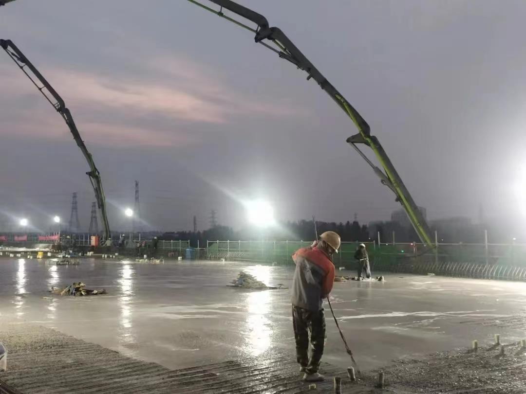京雄高速公路(北京段)全線單跨**大跨70米現(xiàn)澆梁上跨南水北調(diào)+綠洲西路**后一聯(lián)的澆筑,需要的混凝土方量大、作業(yè)時(shí)間長(zhǎng)、澆筑工藝復(fù)雜。為保證澆筑施工過(guò)程順利進(jìn)行,確?;炷潦┕べ|(zhì)量,在混凝土澆筑前,項(xiàng)目方針對(duì)混凝土澆筑的各項(xiàng)工作進(jìn)行了精心部署,并選擇用中聯(lián)重科泵車來(lái)進(jìn)行施工,保證人員、機(jī)械等滿足現(xiàn)場(chǎng)施工需求,保證施工現(xiàn)場(chǎng)安全質(zhì)量可控。