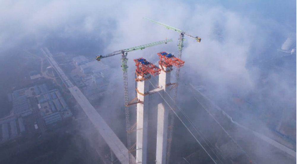 ▲中聯(lián)重科塔機(jī)助力南京仙新路過(guò)江通道施工(圖片來(lái)源于中交二航局)