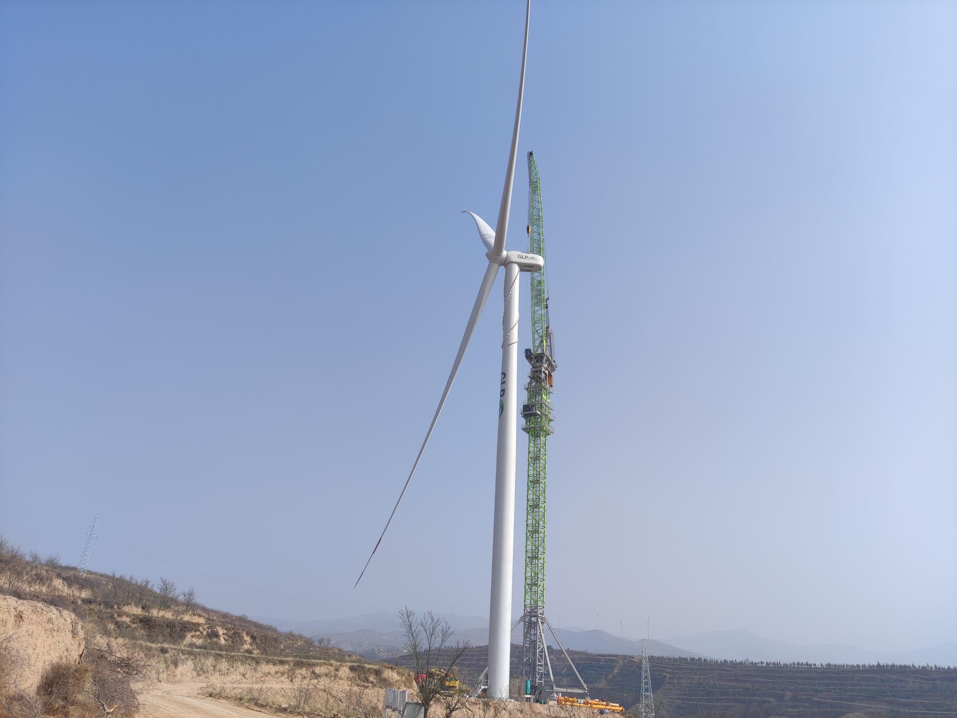 據(jù)了解,近年來,山西運城夏縣利用當(dāng)?shù)刎S富的風(fēng)力資源,以綠色風(fēng)電產(chǎn)業(yè)助力鄉(xiāng)村振興。夏縣南大里鄉(xiāng)、埝掌鎮(zhèn)40MW分散式風(fēng)電項目所在場區(qū)地形較為復(fù)雜,主要為東西走向的陡峭山地。項目方考慮到施工環(huán)境的限制和成本上的顯著優(yōu)勢,選用中聯(lián)重科風(fēng)電動臂塔機LW2340-180,負(fù)責(zé)S1-S4塔筒和機艙總成、輪轂、葉片等的吊裝。