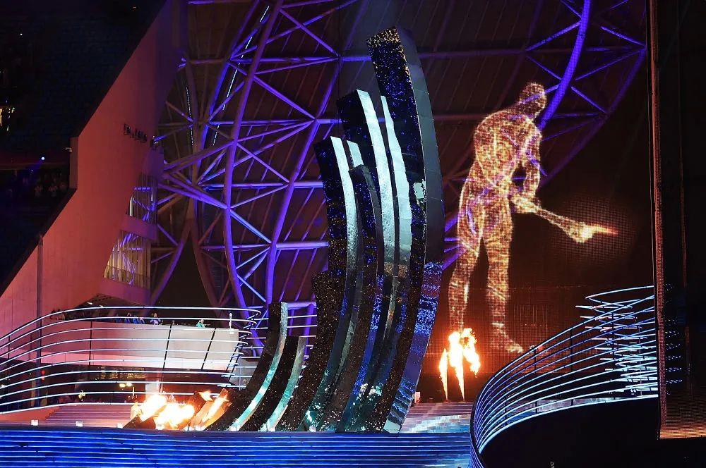 △9月23日,數字火炬手在點燃主火炬(圖片來源:新華社)
