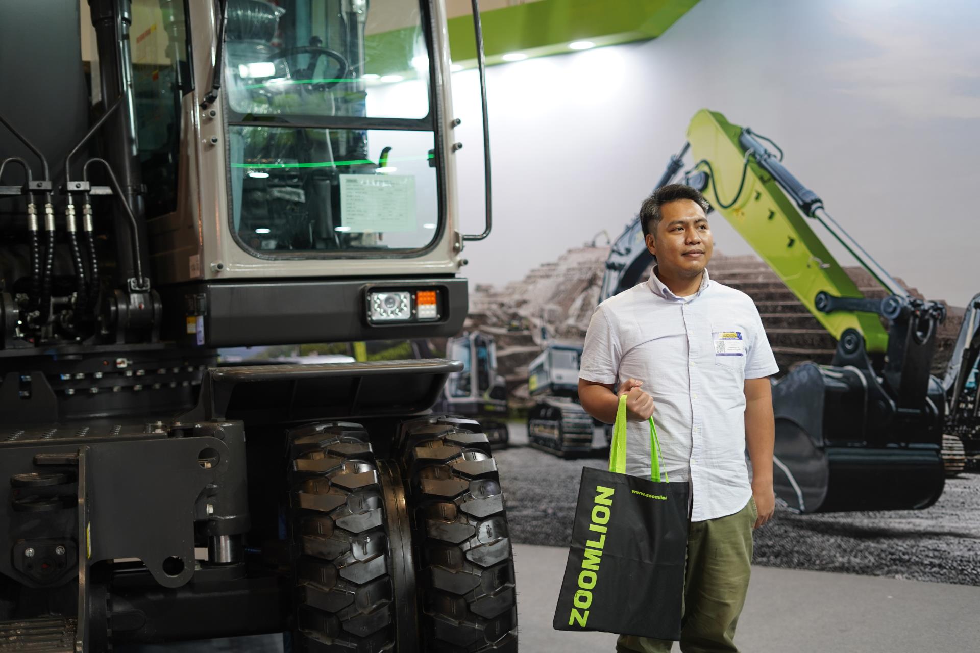 充分滿足市場需求讓中聯(lián)重科產(chǎn)品贏得了更多客戶青睞。以土方機械為例,此次中聯(lián)重科帶來了中大噸位挖掘機ZE215E ACE和輪式挖掘機ZE150WG。其中,ZE215E屬于出口東南亞的主力機型之一,ACE款則專為菲律賓市場“量身定制”,擁有動力十足、安全舒適等優(yōu)勢,非常適應當?shù)毓r,且采用當?shù)亓餍衅放瓢l(fā)動機,更省油耐用,維護保養(yǎng)和更換配件也更便捷,更受當?shù)乜蛻魵g迎。