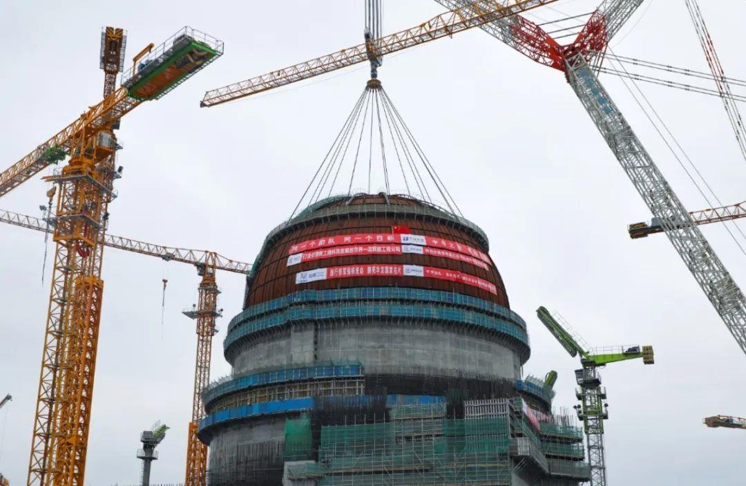核島內(nèi)穹頂位于反應(yīng)堆廠房頂部,其直徑為46.8米,高度23.4米,總吊裝重量達(dá)518.113噸。核島內(nèi)穹頂作為核電機(jī)組**三道安全屏障,是保證反應(yīng)堆廠房完整性和密閉性的重要組成部分,內(nèi)穹頂?shù)跹b也因此成為核電工程建造的重要里程碑節(jié)點(diǎn)。