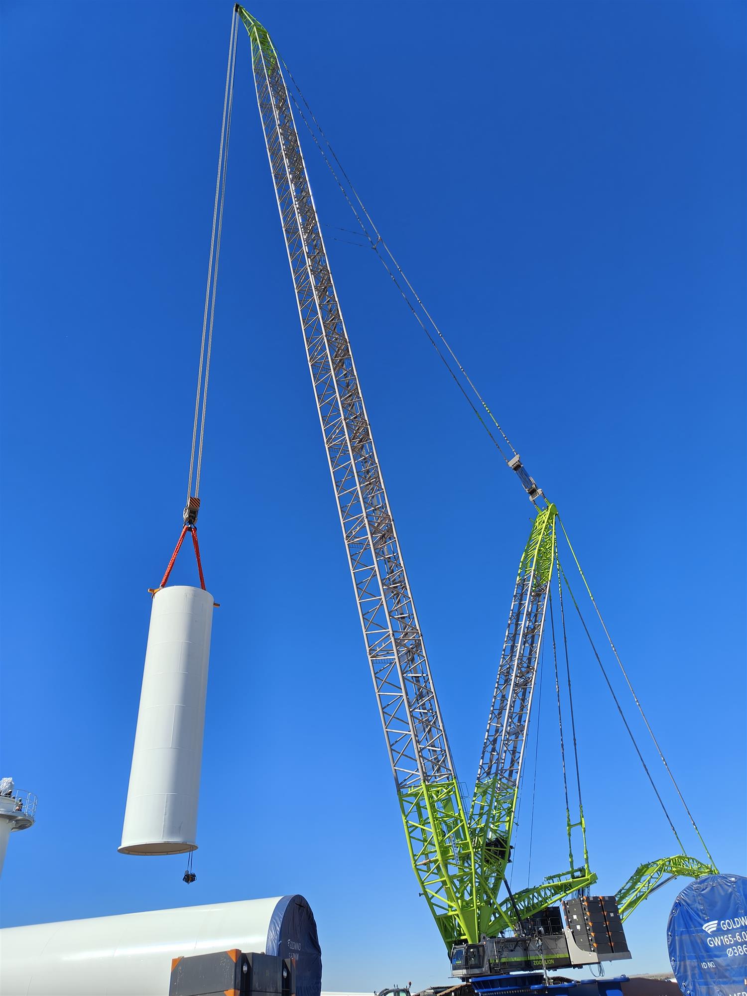 中聯(lián)重科1250噸級履帶起重機(jī)完成交付后,立即投入到當(dāng)?shù)刂攸c風(fēng)電項目建設(shè)中。當(dāng)?shù)貢r間上午10:05分,在項目工地上,隨著現(xiàn)場指揮員一聲令下,中聯(lián)重科履帶起重機(jī)將重達(dá)107噸的風(fēng)機(jī)塔筒平穩(wěn)吊起,然后將塔筒順利安裝在基座上,整個吊裝過程銜接緊密、井然有序,為后續(xù)風(fēng)機(jī)的安裝工作奠定了堅實基礎(chǔ)。中聯(lián)重科的高品質(zhì)智造裝備以出色的實戰(zhàn)表現(xiàn),贏得非洲客戶的高度評價。