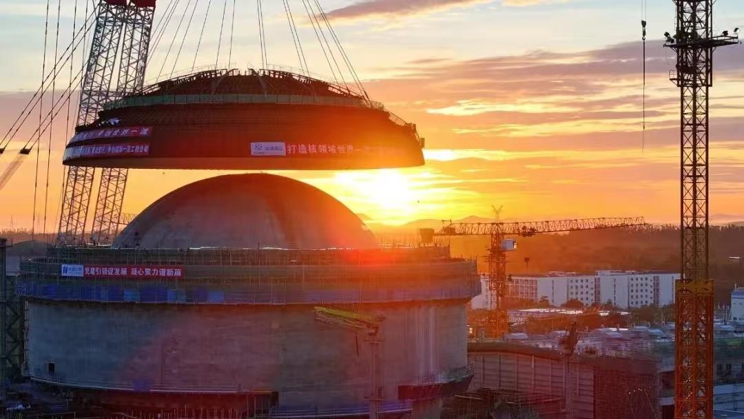 “準(zhǔn)備起吊”!伴隨著現(xiàn)場吊裝總指揮的一聲令下,10月18日,總重量約為600噸的昌江核電二期3號機(jī)組超大型外穹頂模塊,在中聯(lián)重科3200噸履帶起重機(jī)的吊裝下安全而平穩(wěn)地落在核島頂部,為核電機(jī)組勾勒出了雄偉的輪廓,也標(biāo)志著核島主體結(jié)構(gòu)施工已基本完成,為接下來的安裝調(diào)試及并網(wǎng)發(fā)電奠定了堅(jiān)實(shí)的基礎(chǔ)。