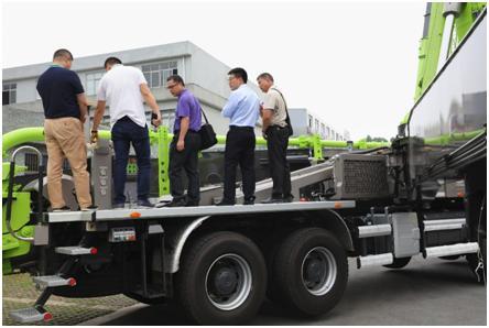 ▲客戶親自登上中聯(lián)重科4.0設(shè)備觀摩體驗。