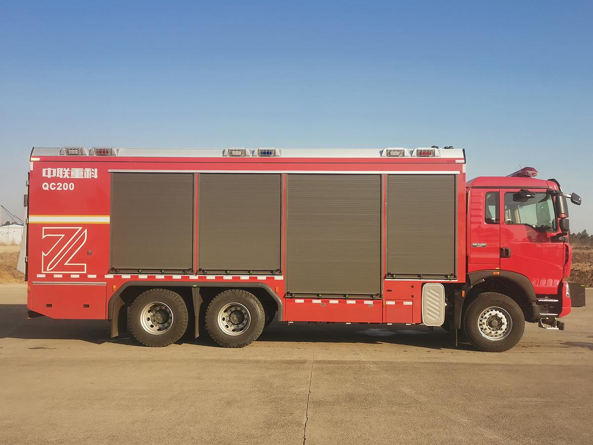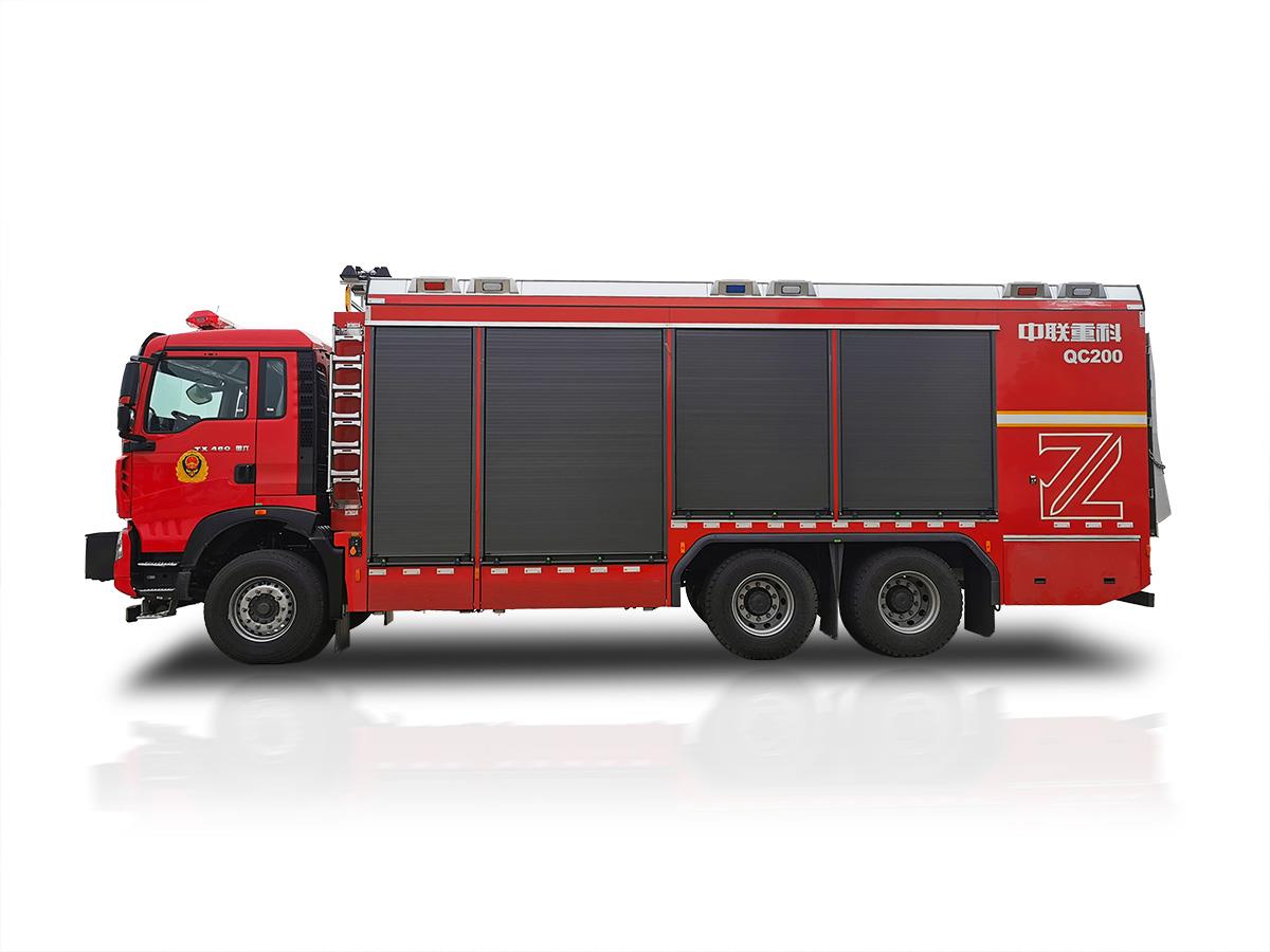 中聯(lián)重科全新一代QC200-6型器材消防車,結(jié)合國內(nèi)外消防車的先進理念和消防實戰(zhàn)創(chuàng)新設(shè)計而成,具備強大的搶險功能和綜合救援能力,整車結(jié)構(gòu)緊湊,越障能力強,整車操作性、安全性及智能化控制水平處于國內(nèi)先進水平。
