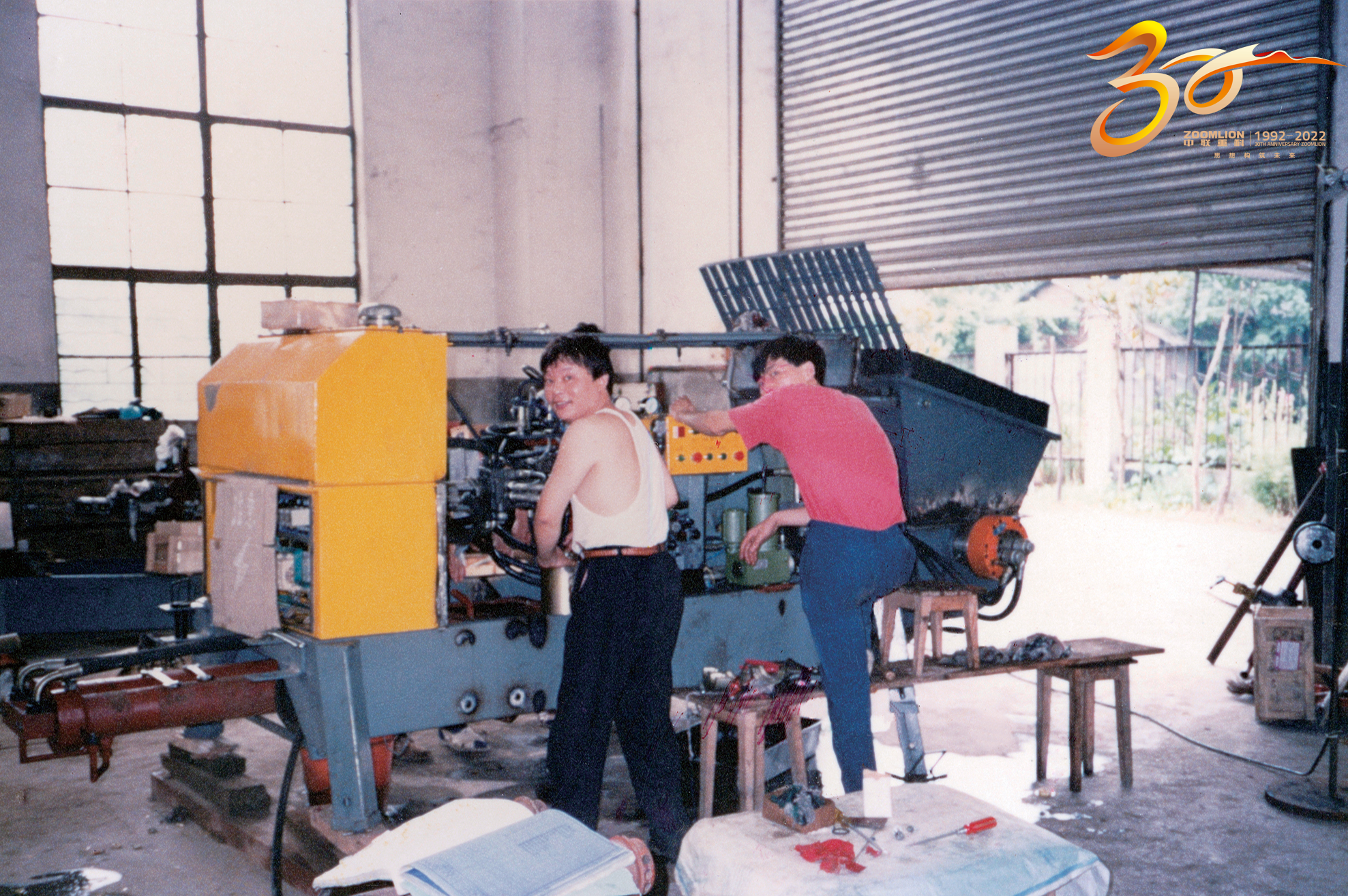 1993年,創(chuàng)業(yè)初期的中聯(lián)重科**貴的生產(chǎn)設(shè)備是一臺臺鉆。在簡陋的生產(chǎn)條件下,憑借著“吃得苦,耐得煩、霸得蠻”的精神,敲敲打打研制出了**一臺混凝土輸送泵。