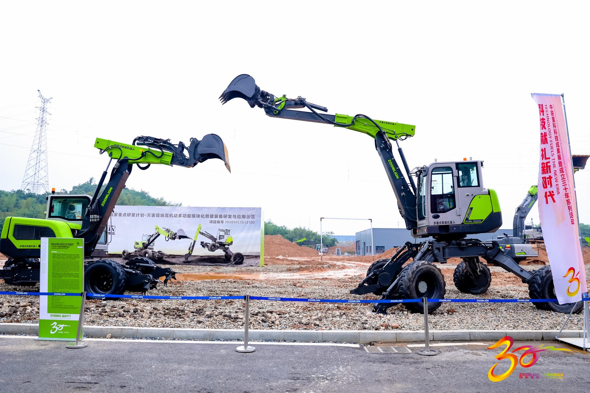 △中聯(lián)重科全球首創(chuàng)的10噸步履式多功能模塊化救援機(jī)器人